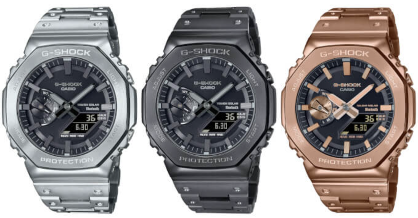 The first all-metal watch in the ever-evolving 2100 series reflects the identity of the very first G-SHOCK DW-5000C like no other. With its screw-down case and stainless steel bezel and bracelet, this watch has a very high-quality design, with the module protected by the iconic G-SHOCK shock-resistant structure of the case. With the octagonal bezel and curved strap design of the original from 1983, we recall the beginnings of G-SHOCK. The high-quality production process of the analog-digital watch allows for a flat design while still offering a wide range of important functions and very high wearing comfort. As a connected watch, the watch pairs with a smartphone via Bluetooth®. Simply tap on the corresponding app to keep track of the time precisely or operate other functions. The GM-B2100 series is equipped with the environmentally friendly Tough Solar technology, which supplies power to all functions, such as the bright LED light, alarm or countdown timer. It convinces not only with its design and high-quality workmanship, but also with its exceptional user-friendliness.