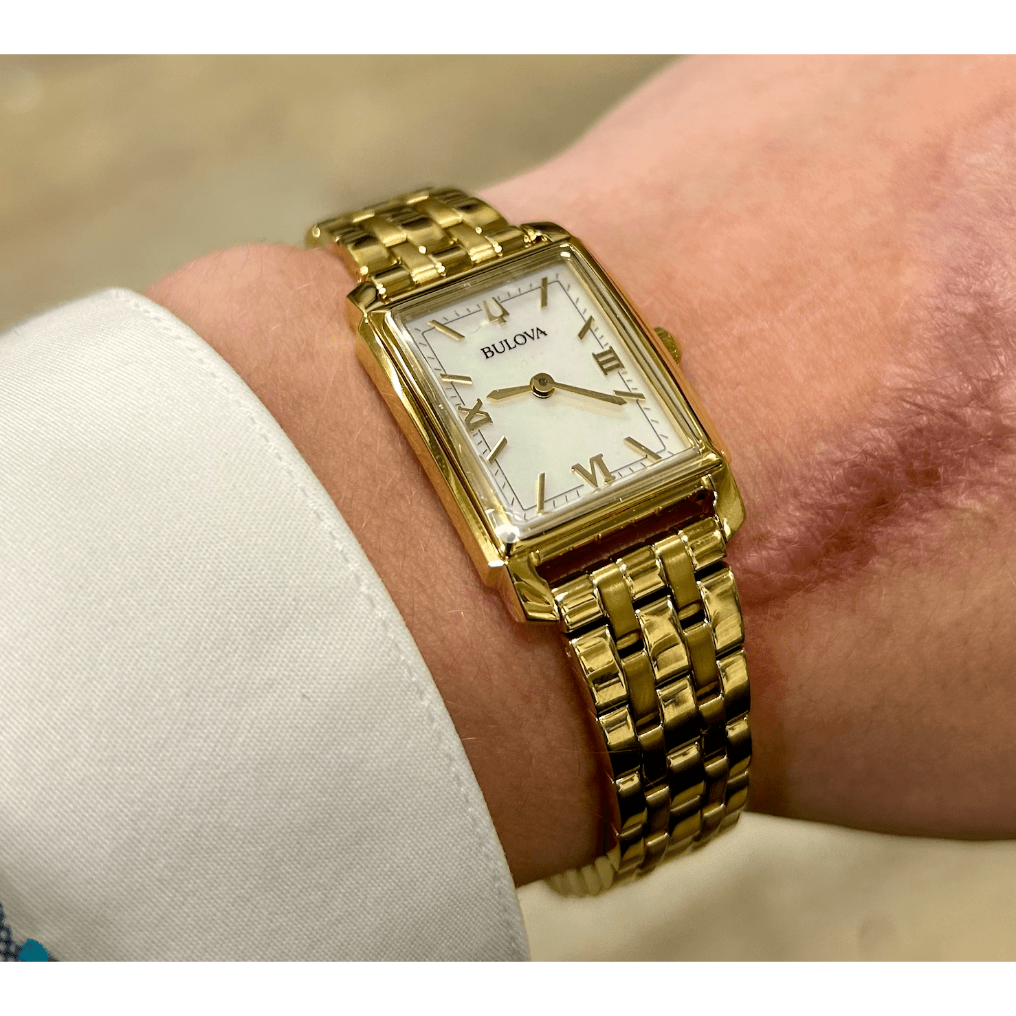 TheBulova 97L177has adiameter of 21 mm, which provides an elegant and subtle look. The yellow goldstainless steel strapoffolding clasp and push buttonoffers comfort and style. Itmineral glassprotects the dial from daily wear and tear, while thewater resistance of 3 ATMmaking the watch suitable for light daily activities.