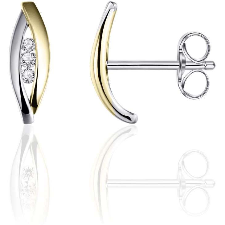 beautiful Bi-colour stud earrings made in 14k white and yellow gold, finished with beautiful zirconia stones!
