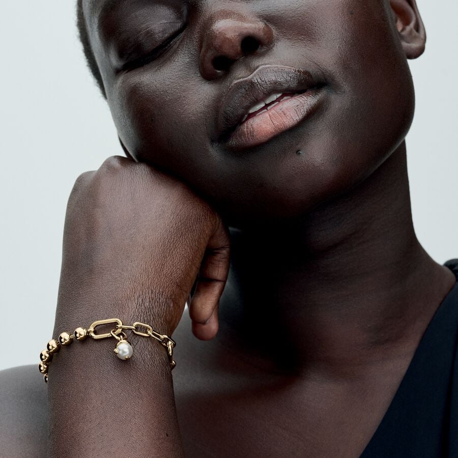 The Pandora Charm Snake with Mother of Pearl 763375C01 combines sophistication with a powerful symbol. A 14k gold-plated snake wraps gracefully around a lacquered imitation pearl, with sparkling stones for eyes and detailed scales on the head. A unique piece of jewelry for your Pandora ME collection, perfect for opening links. Available at Juwelier van Dam in Ermelo .