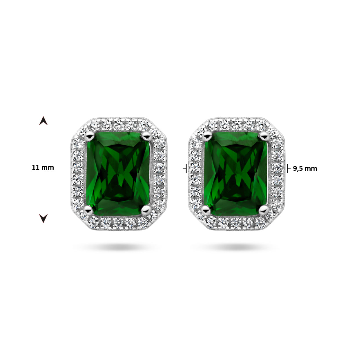 vDam Oorknoppen Groen En Wit Zirkonia Halo Zilver Gerhodineerd 1336060