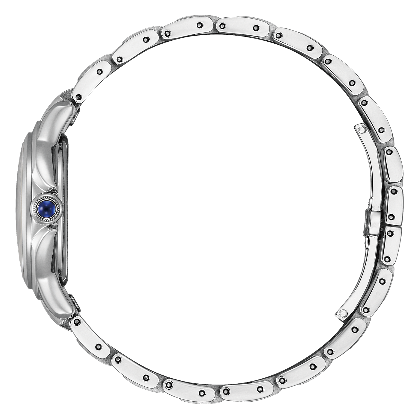 De Citizen Elegance EM1160-58E is een stijlvol dameshorloge dat elegantie combineert met de innovatieve Eco-Drive technologie van Citizen. De kast is vervaardigd uit hoogwaardig roestvrij staal en heeft een diameter van 30,25 mm, een hoogte van 8,7 mm en een gewicht van slechts 73 gram. Het compacte formaat en het lichte gewicht maken dit horloge ideaal voor dagelijks gebruik.