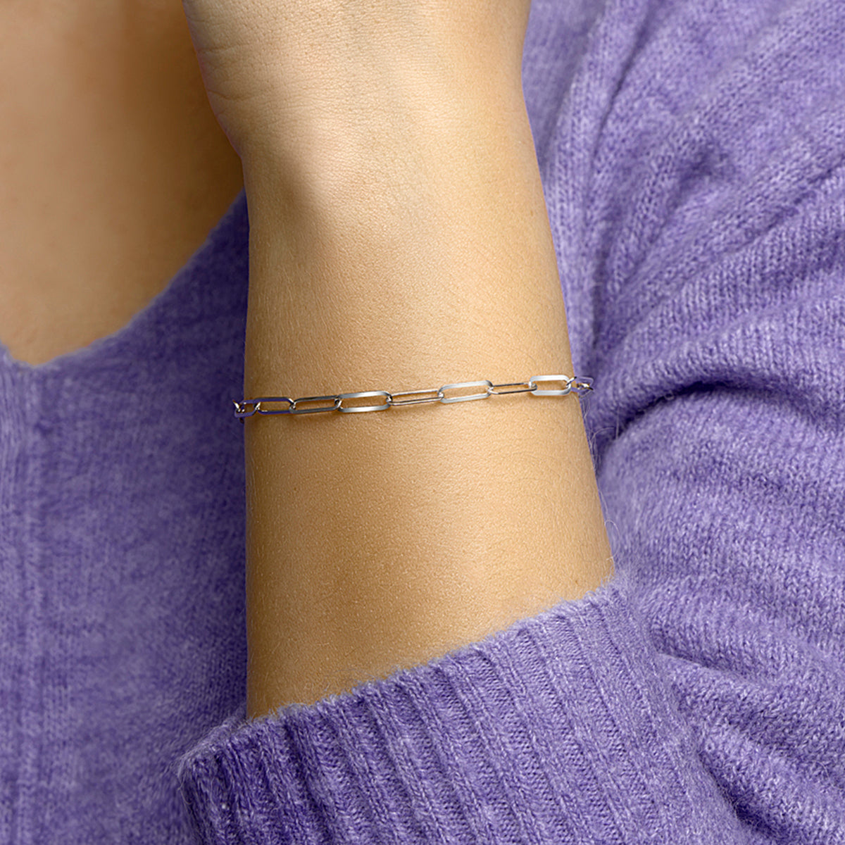 vDam Armband Paperclip Platte Buis 3,8 Mm 16cm + 3 Cm Zilver Gerhodineerd 1332106 16cm