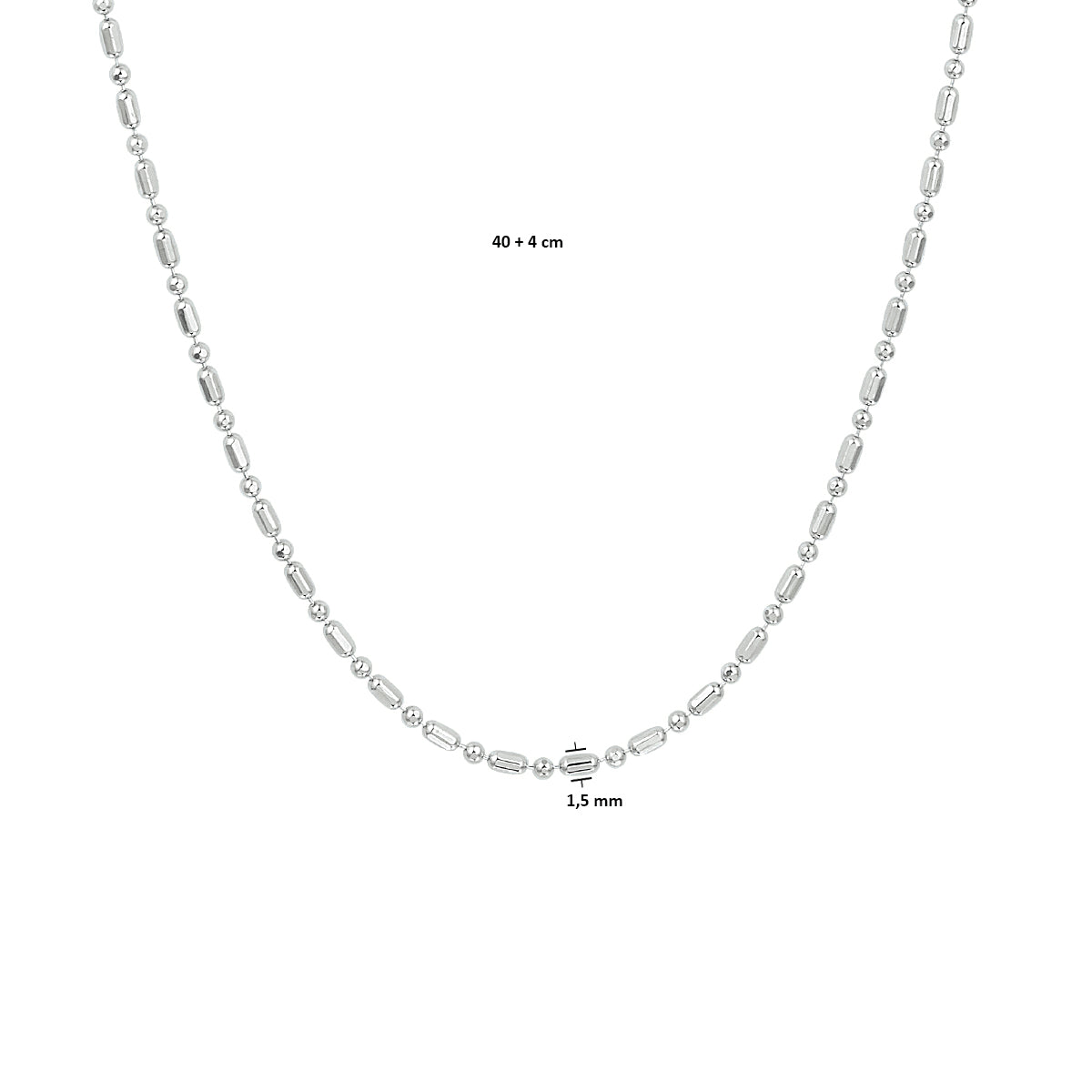 vDam Ketting 1,5 Mm 40cm + 4 Cm Zilver Gerhodineerd 1333304 40cm