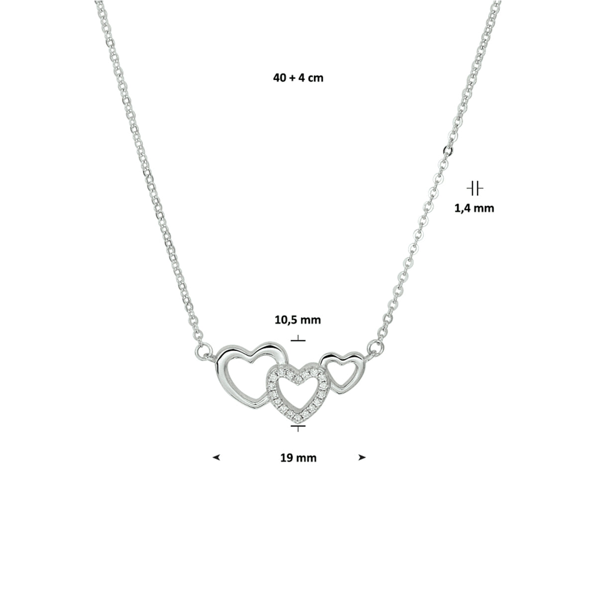 vDam Ketting Hartjes En Zirkonia 40cm + 4 Cm Zilver Gerhodineerd 1328553 40cm