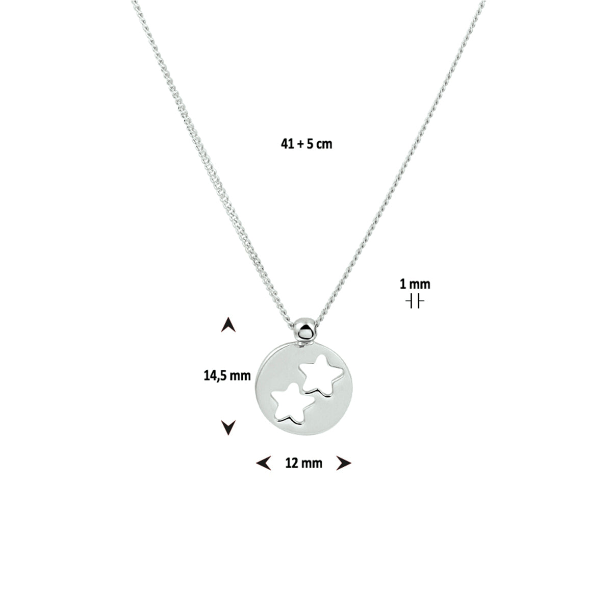 vDam Ketting Rondje Sterren 41cm + 5 Cm Zilver Gerhodineerd 1329956 41cm