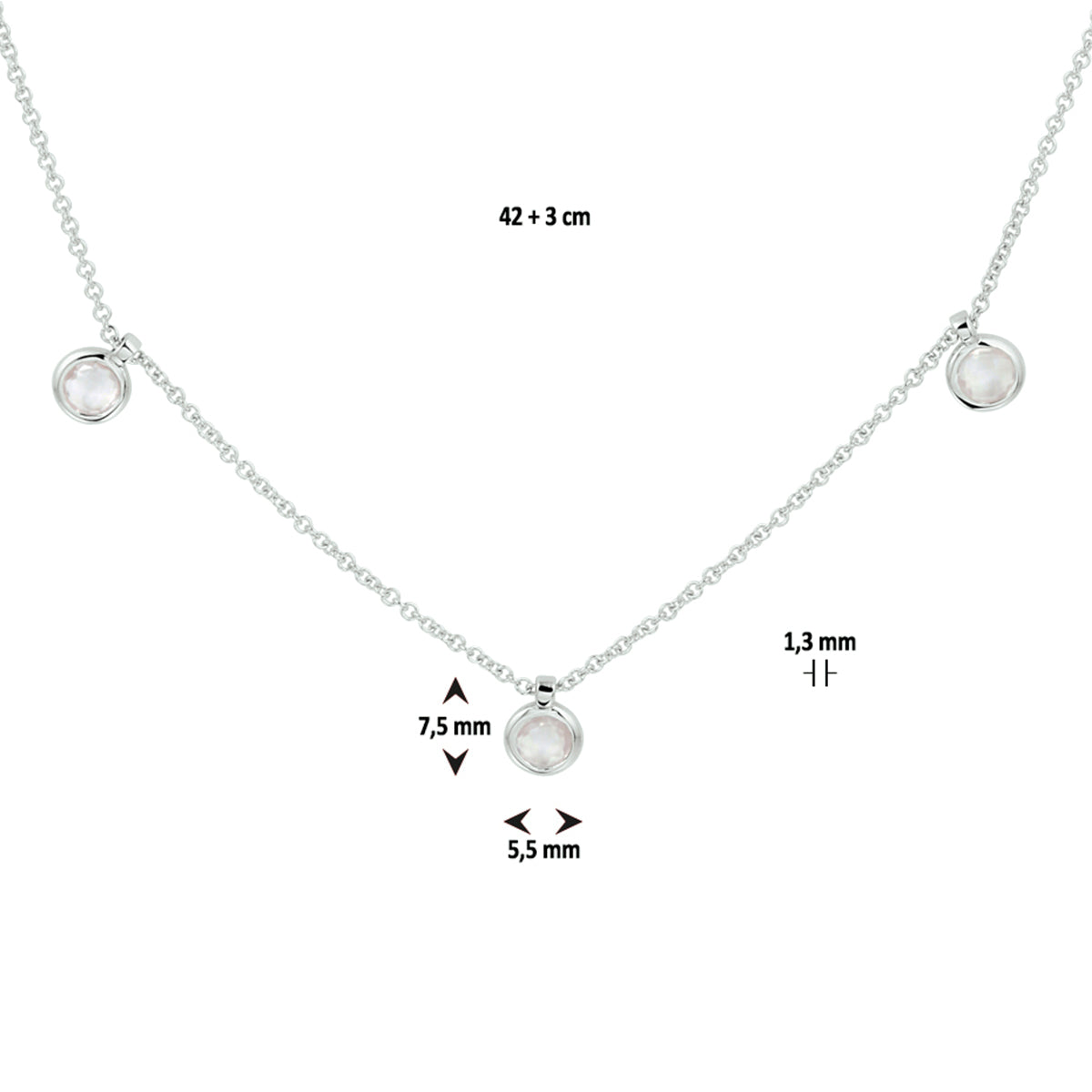 vDam Ketting Rozenkwarts 42cm + 3 Cm Zilver Gerhodineerd 1329852 42cm