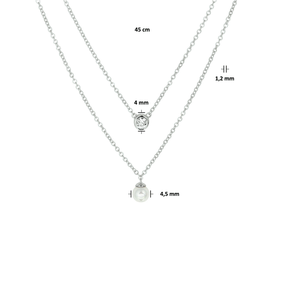 vDam Ketting Synth Parel En Zirkonia 45 Cm Zilver Gerhodineerd 1329108 42cm