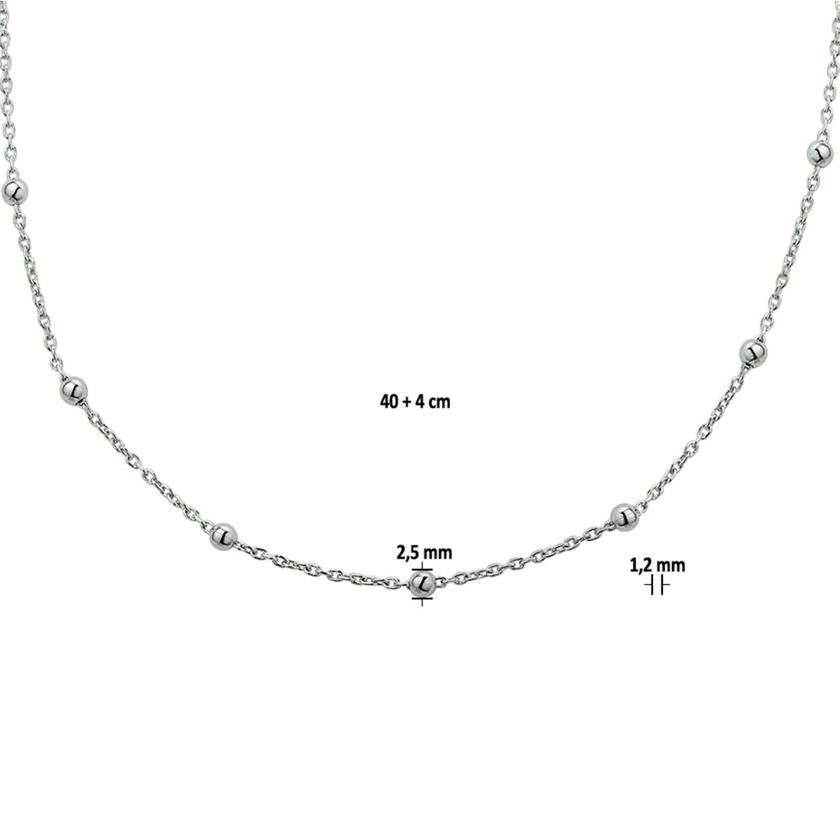 vDam Ketting Bolletjes 1,5 Mm 40cm + 4 Cm Zilver Gerhodineerd 1327016 40cm