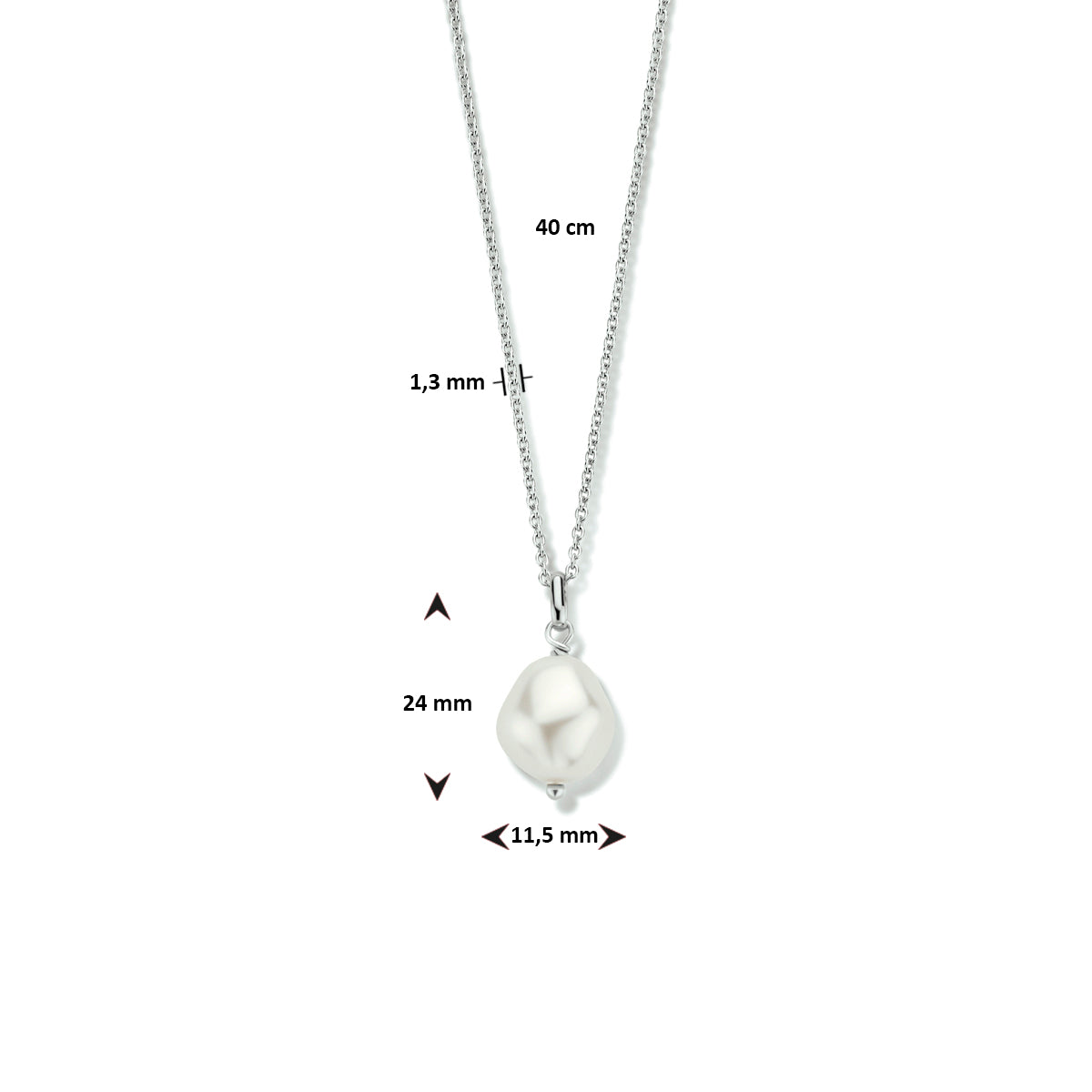 vDam Ketting Synth Parel 40cm Cm Zilver Gerhodineerd 1335814 40cm