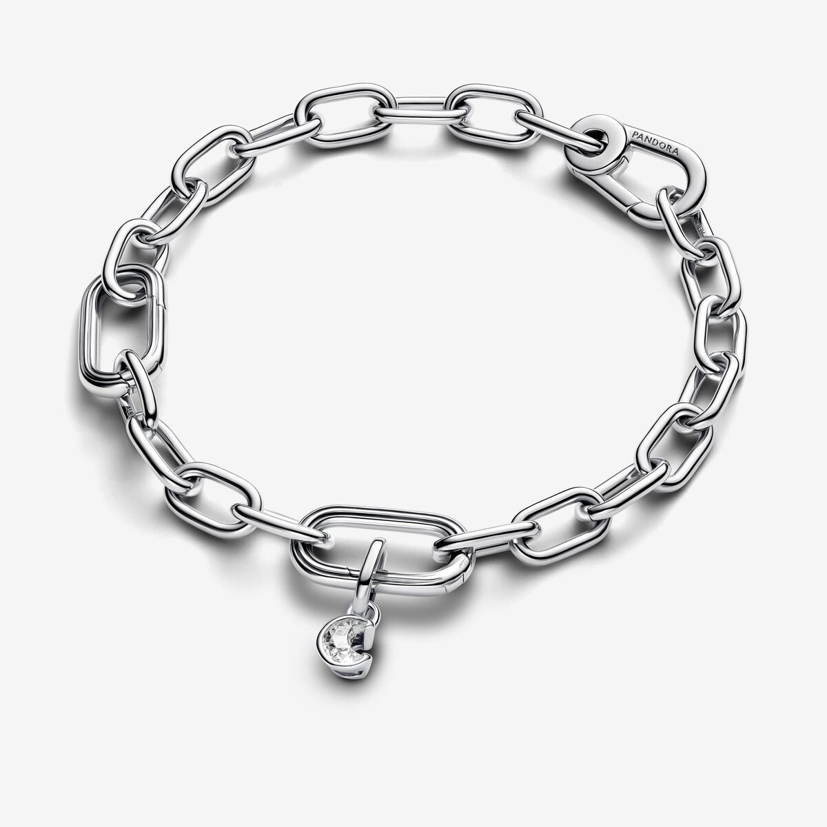 The Pandora Charm Moon 793364C01 is an elegant sterling silver mini pendant with a sparkling moon-shaped cubic zirconia. The stone is set in a refined basket with an openwork crescent moon on the back, which gives it a subtle depth. A timeless symbol of beauty and strength, perfect for your Pandora ME collection. Available at Juwelier van Dam in Ermelo .