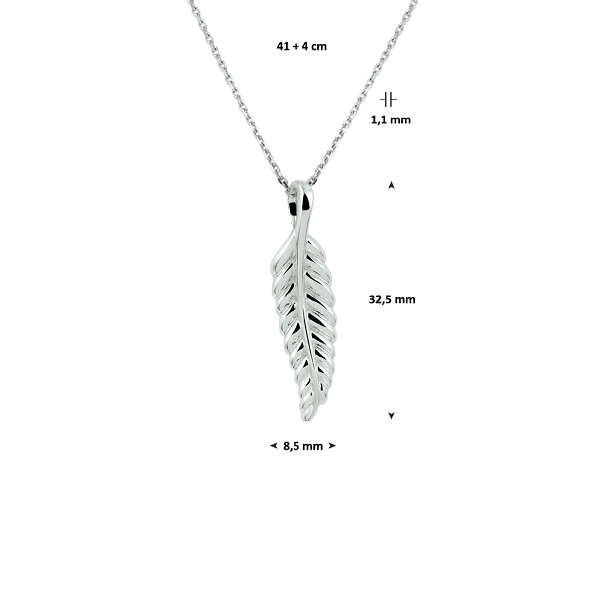 vDam Ketting Veer 41cm + 4 Cm Zilver Gerhodineerd 1328345 41cm