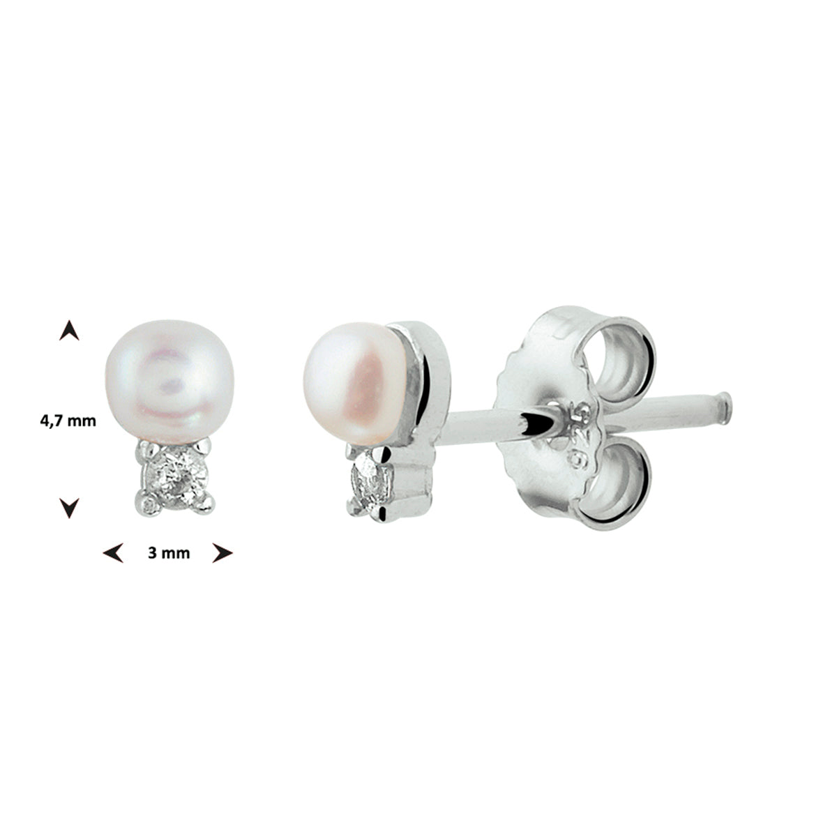 vDam Oorknoppen Parel En Zirkonia Zilver Gerhodineerd 1331964