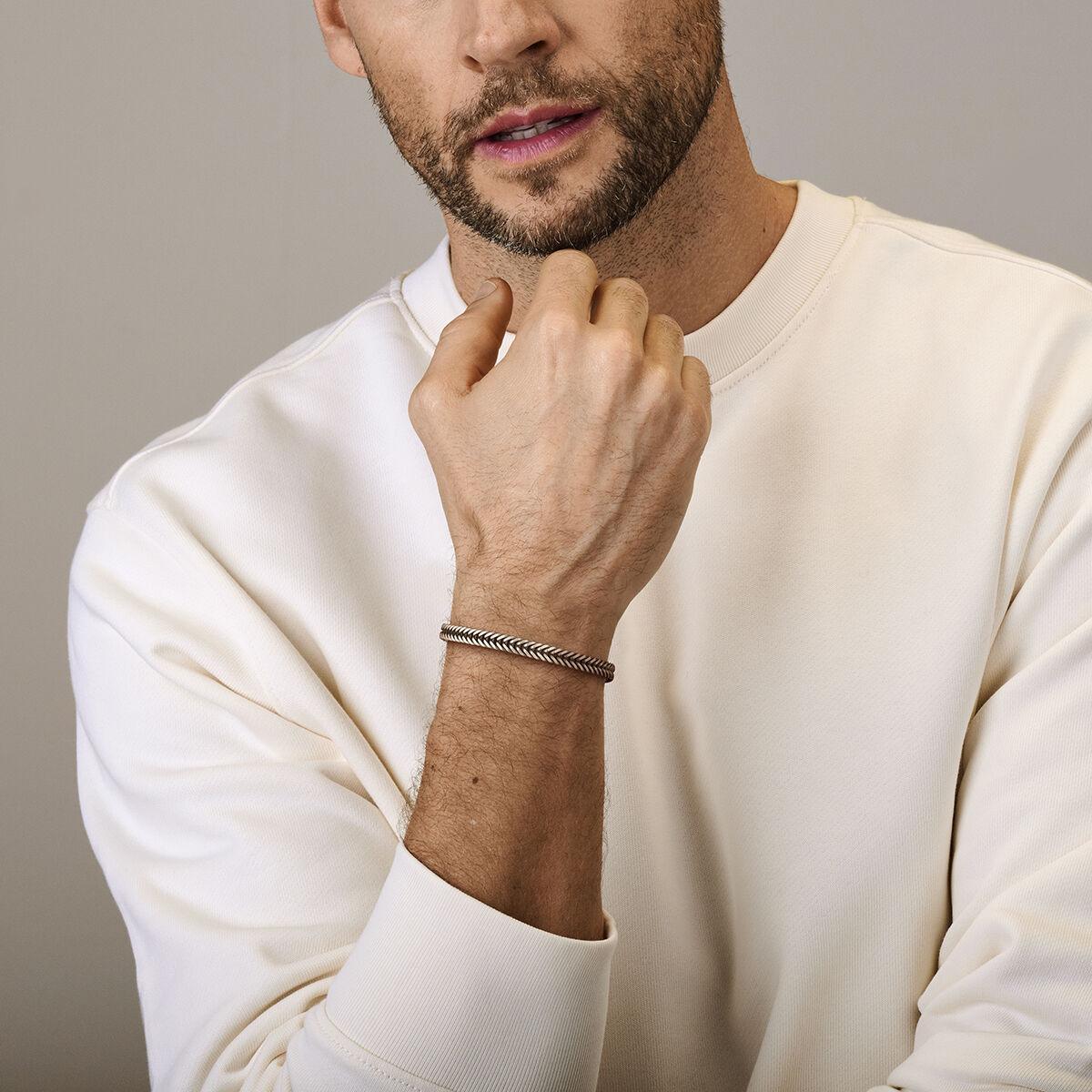 The vDam Silver Bracelet 1101798 is a robust and stylish piece of jewelry with a unique look. This oxidized 925 silver bracelet has a beautiful foxtail or palmier link, which gives it a special texture and a contemporary look. With a link width of 6.4 mm and a length of 21 cm, this bracelet offers a comfortable and striking fit. The weight of approximately 21.1 grams and the polished finish ensure a sturdy and luxurious look. Perfect for those who love a piece of jewelry with character, this bracelet combines durability with a refined, modern look.