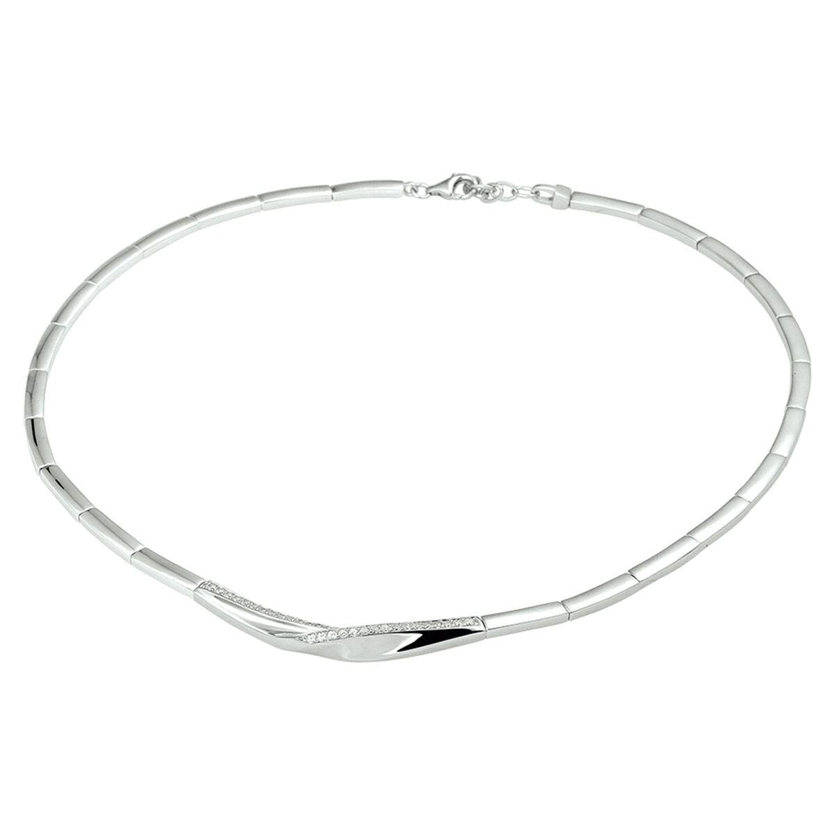 The vDam Silver Necklace with Zirconia is a refined piece of jewelry that combines luxury and style. This necklace, made of rhodium-plated silver, has a polished finish that offers a beautiful shine. The transparent zirconia in brilliant cut, set in a refined row setting, add a sparkling detail to the modern design.