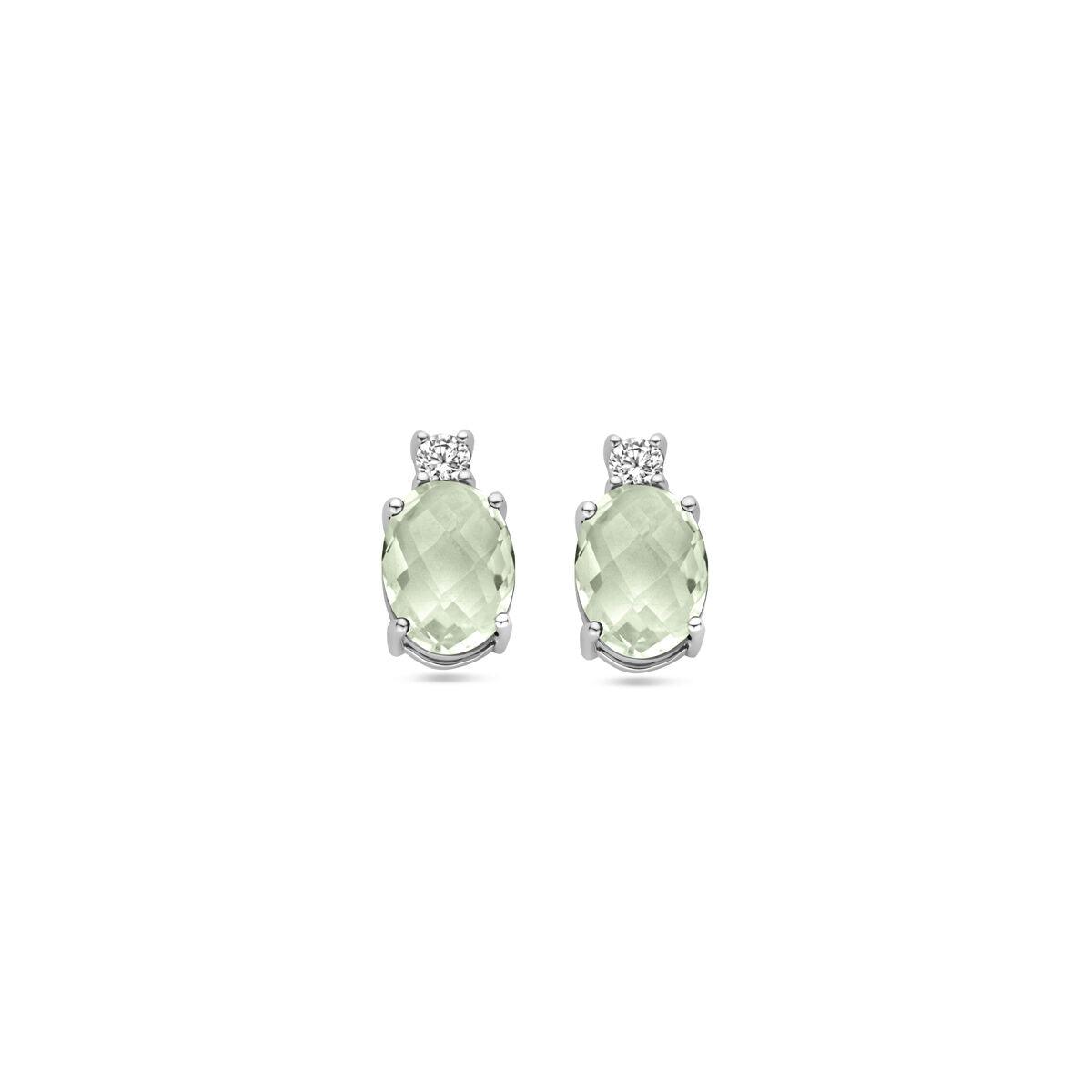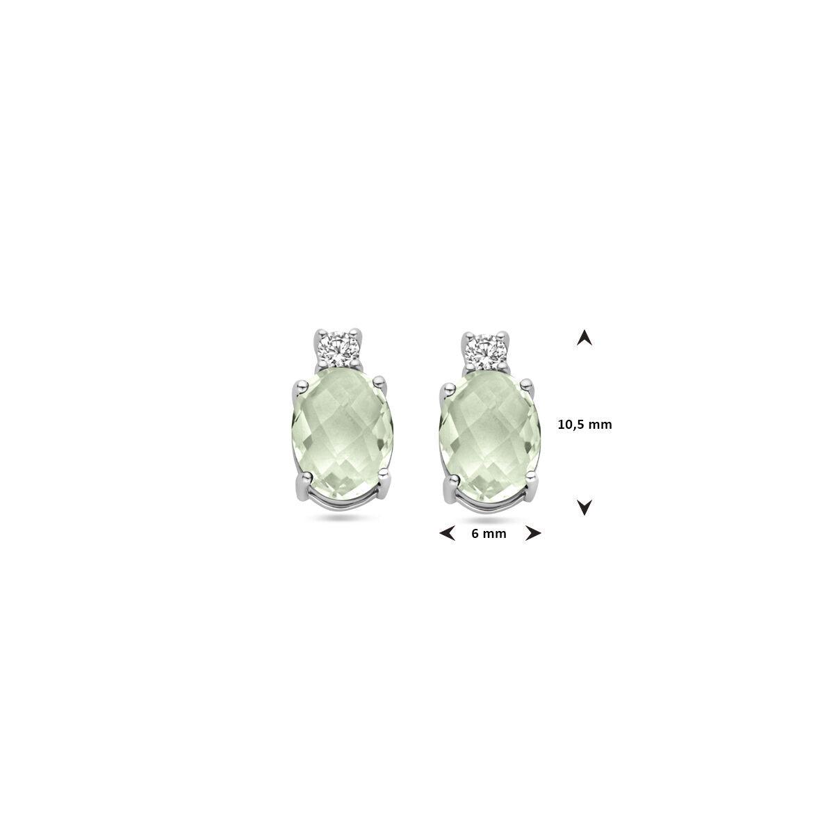 These elegant vDam Silver Stud Earrings combine the subtle beauty of green amethyst with the sparkle of zirconia. The stud earrings, made of rhodium-plated 925 silver, have a refined oval design with a size of 10.5 x 6 mm. The perfect choice for a touch of color and glamour in your everyday outfit or for special occasions.
