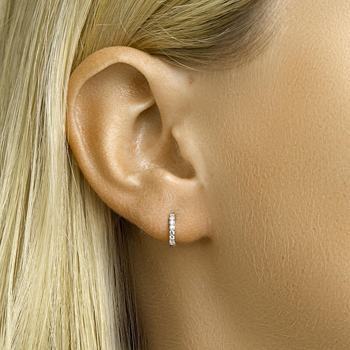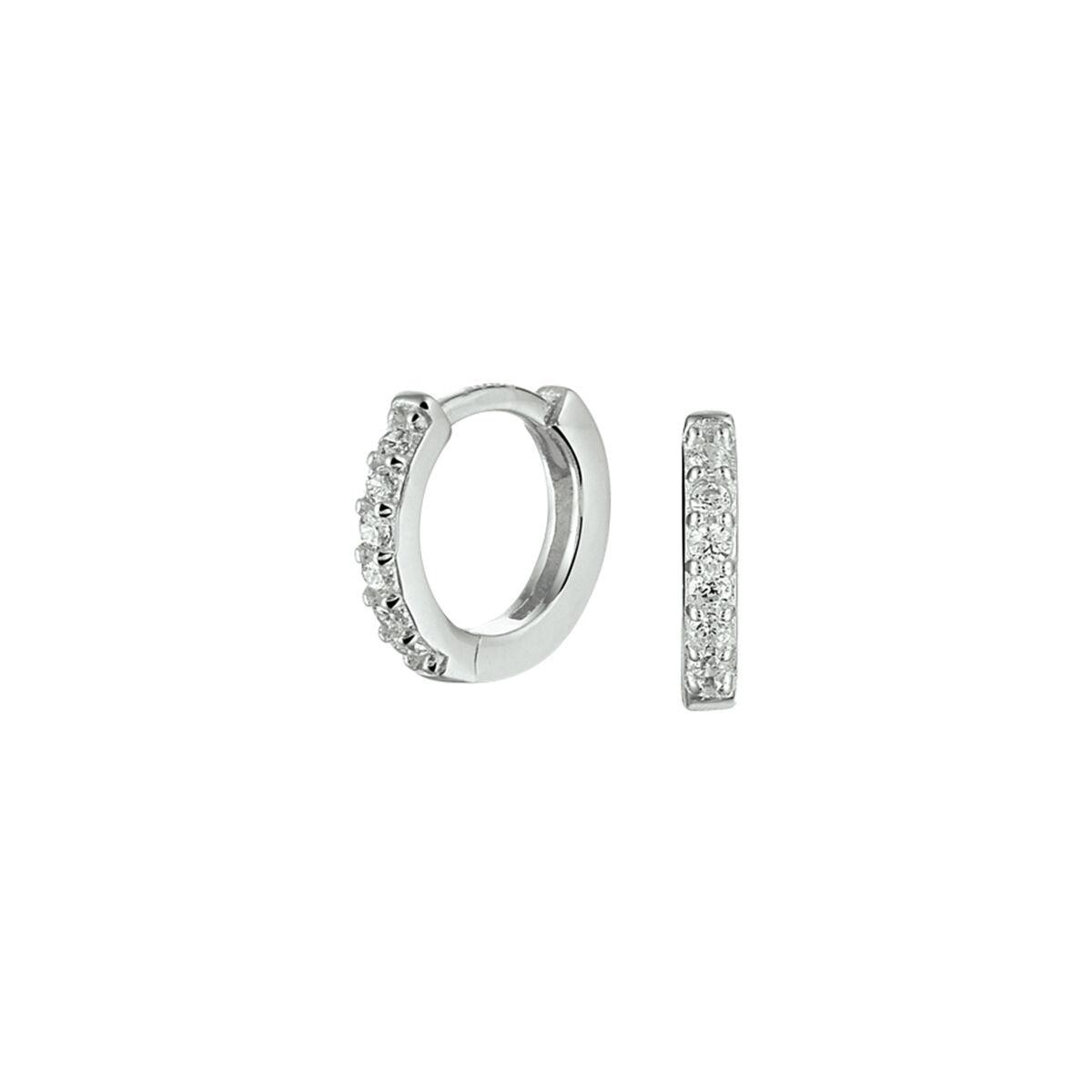The vDam Silver Clap Earrings with Zirconia are a refined and versatile piece of jewelry that is perfect for any occasion. Made of rhodium-plated silver and finished with a polished sheen, these earrings exude simplicity and class. The transparent zirconia in brilliant cut, set in a row setting, add a touch of sparkle to this subtle design.