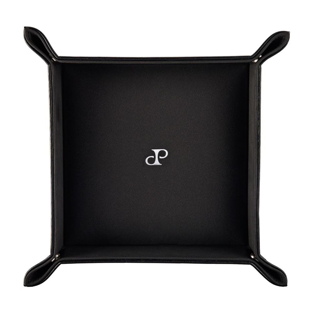 The WOLF Philipp Storage Tray is the stylish solution for storing your daily essentials. Handmade from black grained vegan leather and nubuck, this accessory exudes class and functionality. Ideal for storing your keys, jewelry, watch or business cards - at home or when traveling. Thanks to the foldable design, it takes up little space and is easy to carry. Features the iconic silver DP logo for a luxurious finishing touch. Free shipping at Juwelier van Dam.
